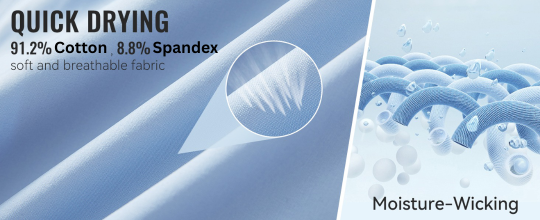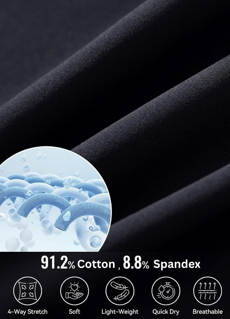 Breathable Soft Fabric: 91.2% Cotton 8.8% Spandex.