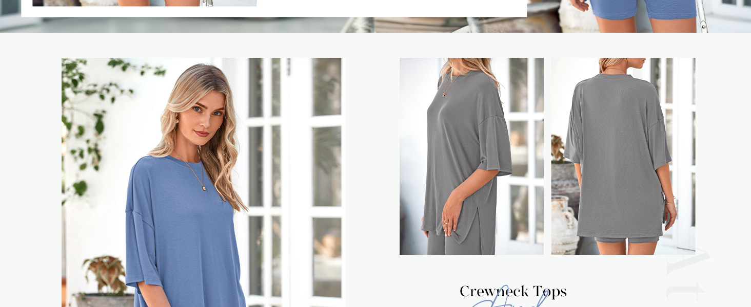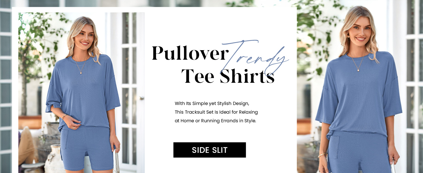 Women's Summer 2 Piece Outfits Casual Pullover Tee Shirts