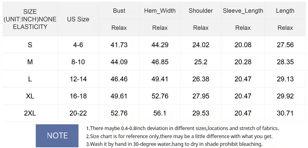 Size Chart: